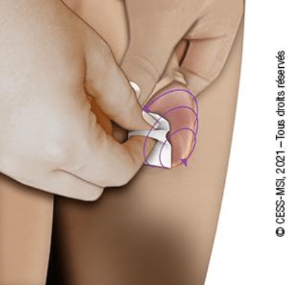 - Nettoyez le gland à l’aide de deux lingettes antiseptiques : mouvement circulaire du méat vers l’extérieur.